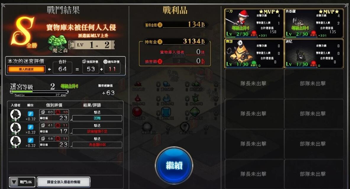 每次破关,都能获得评价。评价不理想吗?没关系!开始新游戏并继承档案吧。虽然迷宫会被重置,但可继承角色的能力值。