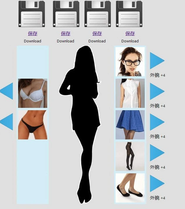可以给MM们搭配不同的外型身材,内衣以及丝袜等等,非常有意思~