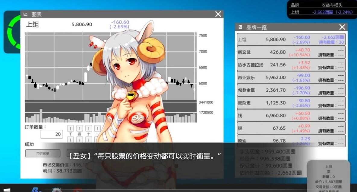 不用CE想体验游戏内容的 这个游戏只有金钱系统 是通过炒股来赚钱的 第一个按钮买进 第二个按钮卖出