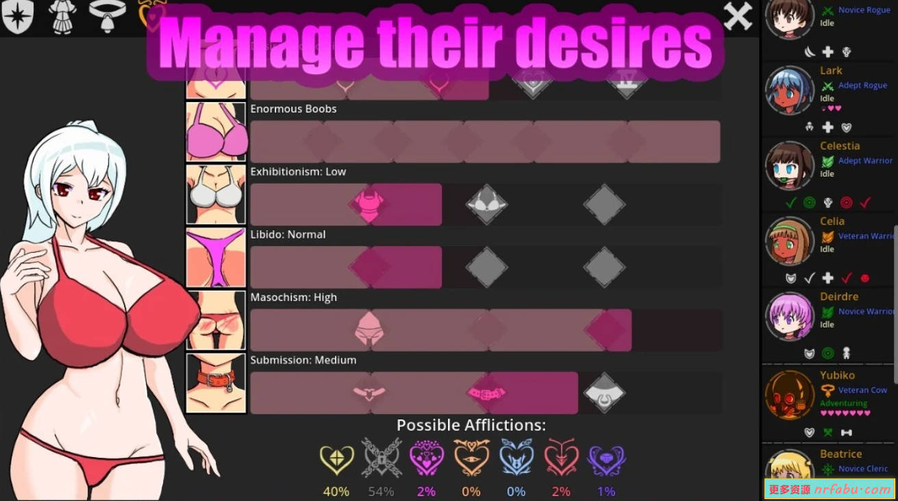 因此,扩大你的羽翼未丰的公会,克服那些不合时宜的欲望工具,并为最淫荡的地牢而奋斗。