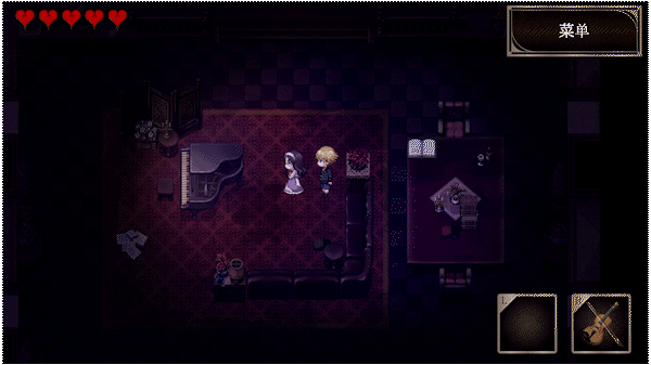为了解开分散在公馆内的诅咒,玩家需要在左右手上装备不同的道具。同时,也有需要利用简单的音乐相关知识破解的诅咒,“音乐”即是本作的一条重要的主轴。