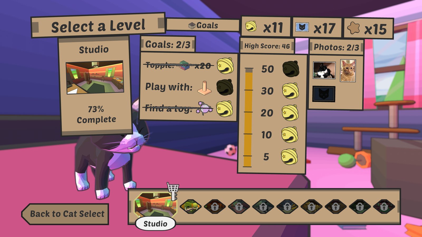 第一人称家猫破坏模拟游戏重装归来!玩家在游戏中扮演一只淘气的猫咪,将人类的物品拍打到地上,抓坏窗帘、打碎珍贵的纪念品,告诉你的主人谁才是老大。