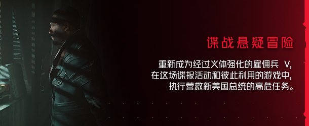 再度化身义体强化的雇佣兵 V,在一片由忠诚、背叛,以及险恶政治阴谋交织成的罗网中寻找伙伴,并在秘密特工所罗门李德的帮助下执行营救新美国总统的高危任务。