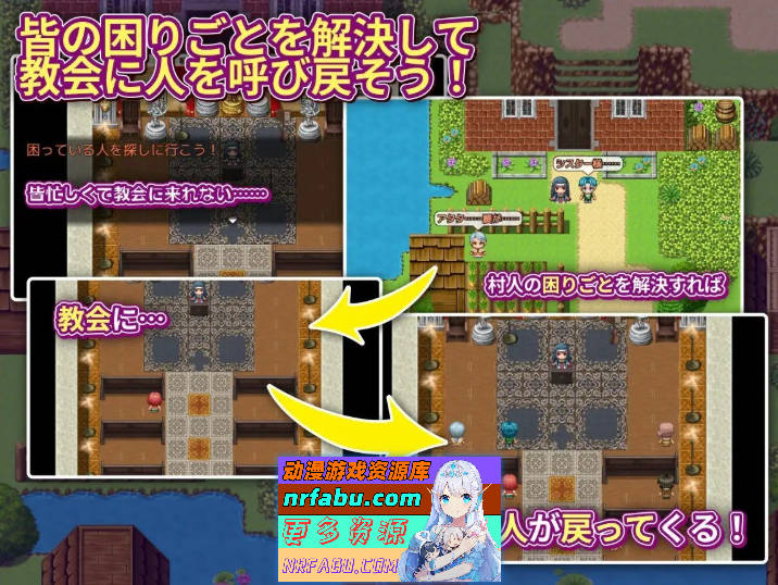 某天,玛利亚发现村民们总是忙碌得无暇来教堂,于是开始主动帮忙解决大家的烦恼,希望能让村民重回教堂!