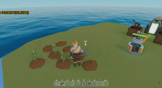 生存:种地、浇水、收割成熟的作物,还能把粮食压缩成矿石