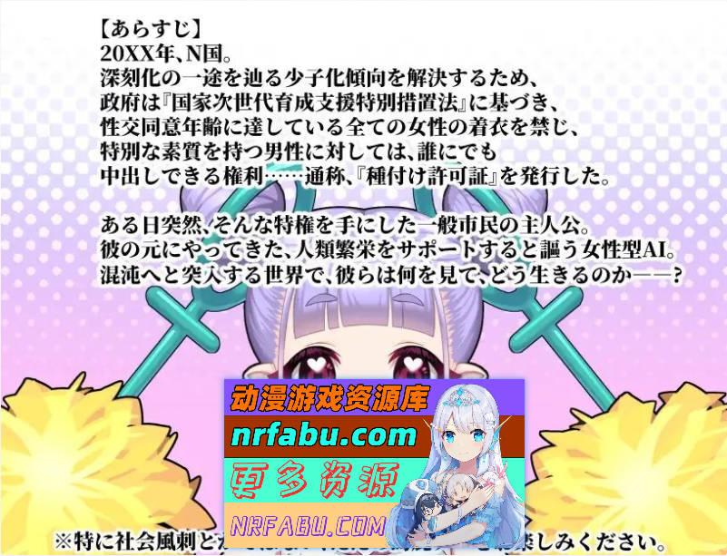 这是一个关于在女性被迫裸体生活的世界中,获得”自由配种权”的男子与其搭档AI的故事——