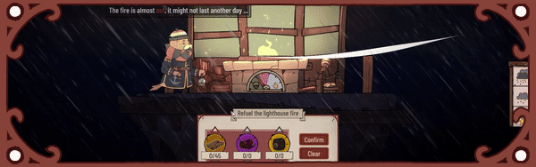 每天的天气还会影响到资源的生产,灯塔火焰的强弱。你还必须留意海啸和水下火山喷发。
